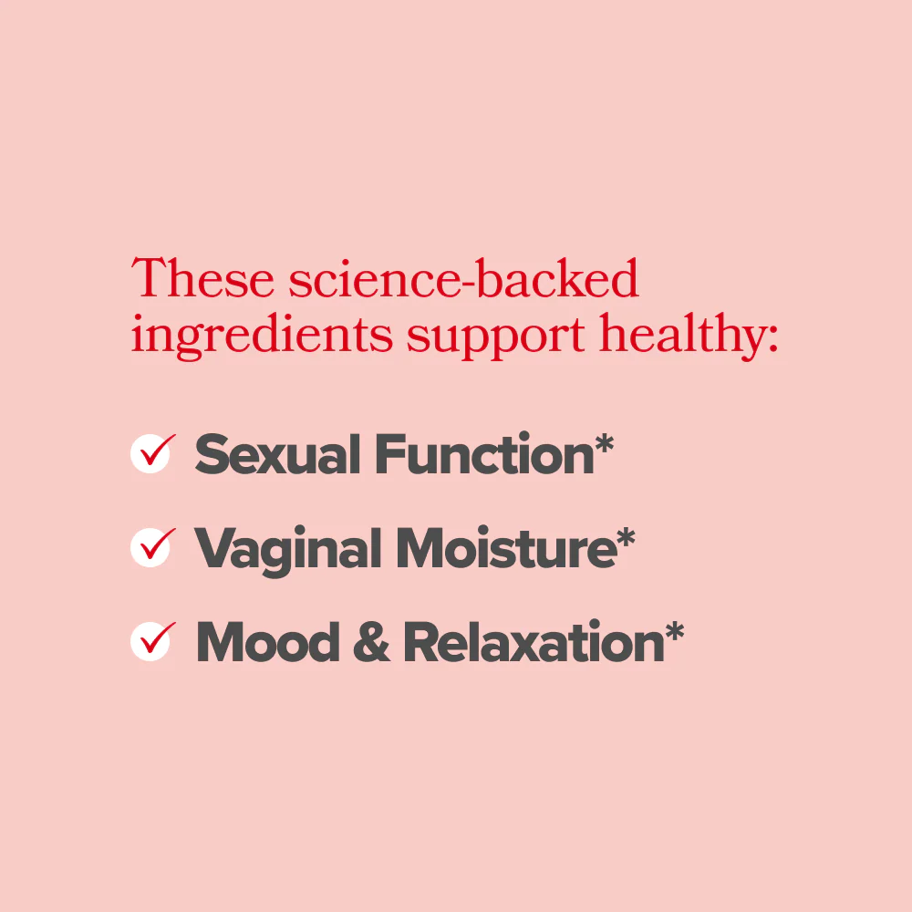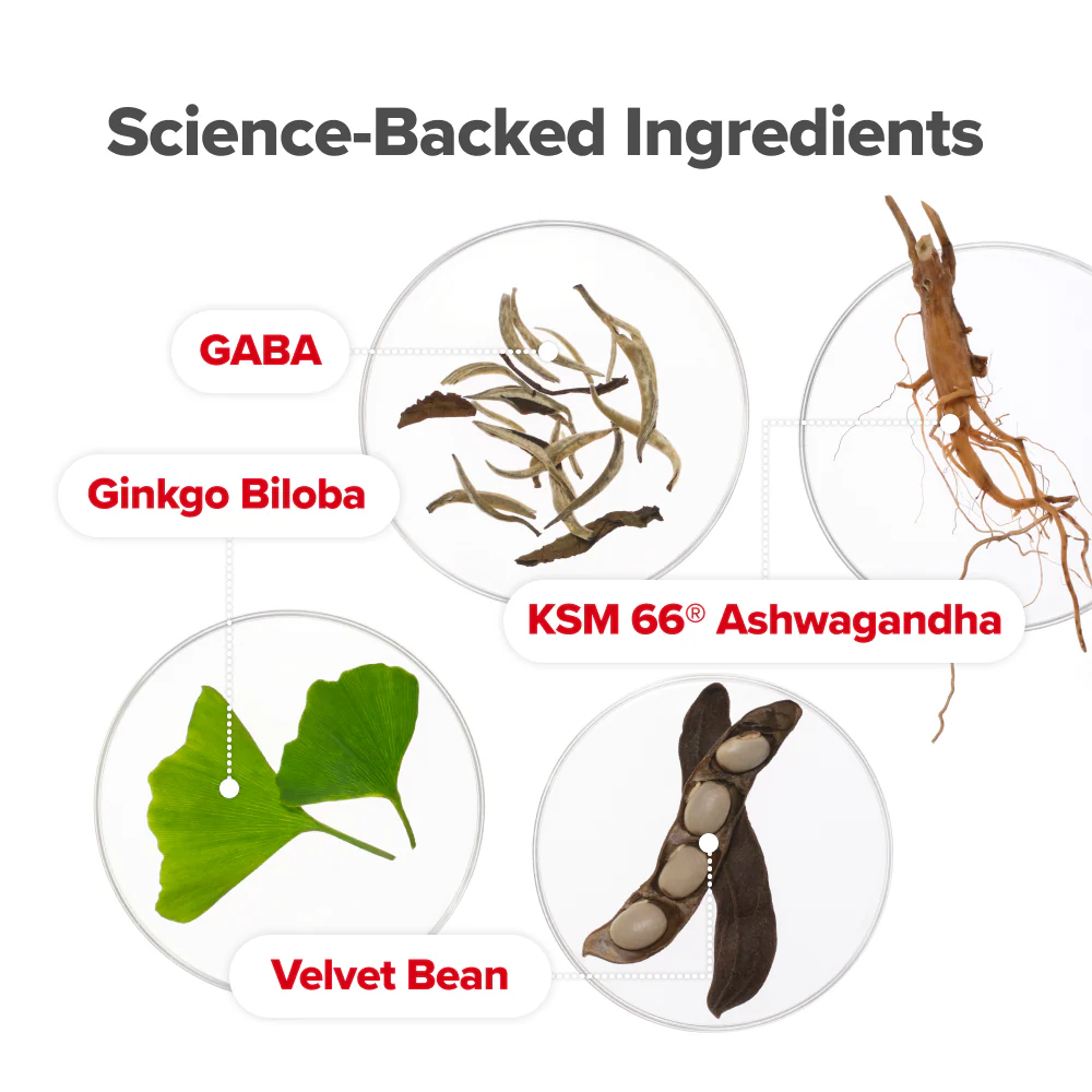 KSM-66° Ashwagandha and GABA are clinicallystudied to support a healthy mood &relaxation-soyou can ease out of overthinking and slide intoconnection. Velvet Bean contains precursors todopamine (the “feel good" chemical) so you're not justphysically ready... you're yearning for it, too.